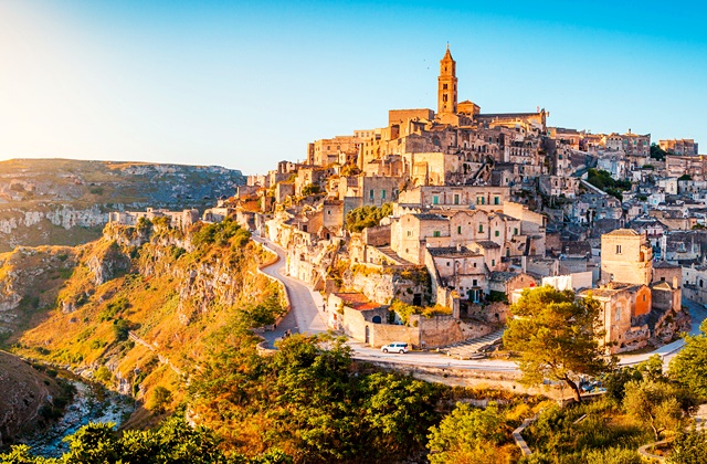 - ●Matera - povijesni krajolik poznat po kamenim četvrtima Sassi i crkvama uklesanim u stijenu