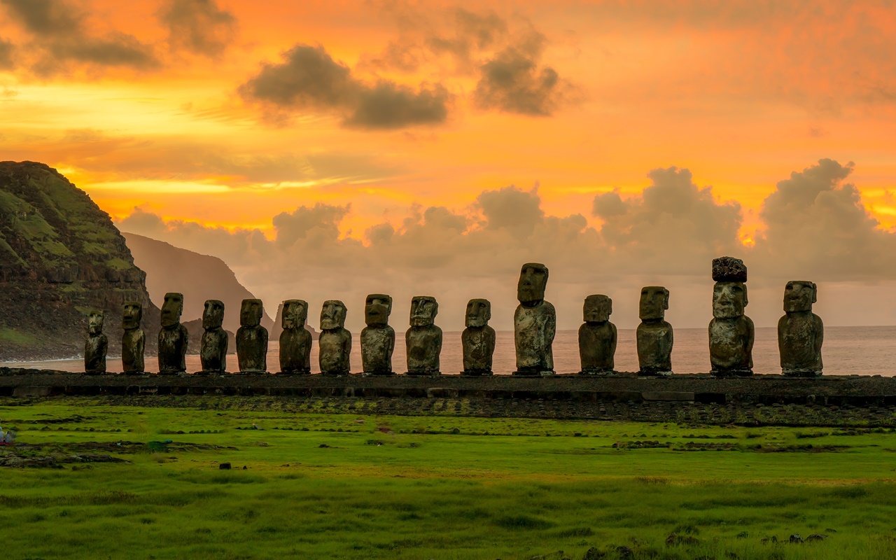 | Nacionalni park Rapa Nui (Uskršnji otok) | Izolirani polinezijski otok s monumentalnim kamenim kipovima moai i ceremonijalnim platformama „ahu“, jedinstveno svjedočanstvo nestale civilizacije Rapa Nui. |