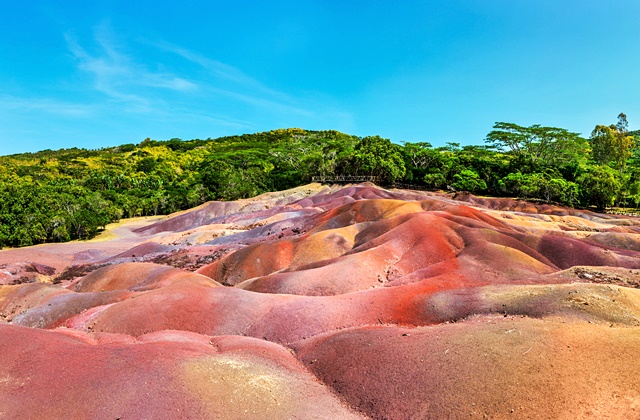 Poznato je i po 33 metra visokim kipovima Shive i Durge, što ih čini najvišim kipovima otoka. Nastavljamo put prema jugu otoka, do nacionalnog parka Chamarel. Tamo ćemo prvo posjetiti vodopad Chamarel, više od 80 metara visoki pad koji je zaista veličanstven kada se nakon kiša napuni vodom. Potom odlazimo do možda i najspektakularnijeg dijela nacionalnog parka, Chamarel Seven Coloured Earth park. Ovaj prirodni fenomen očarava svojim neobičnim i raznolikim spektrom nijansi koje se protežu po zemlji. Crvena, plava, zelena i žuta boja čine ovaj krajolik jedinstvenim i nevjerojatnim. Ova geološka formacija sa 7 boja koja je jedna od najposjećenijih lokacija na Mauricijusu. Glavna značajka ovog mjesta su dine koje se sastoje od različito obojenog pijesaka koji se spontano taloži u različitim slojevima. Tako da ove dine pružaju nadrealnu šarenu boju koja se ne ispire niti za najjačih padalina. Čuti ćemo priču o nastanku ove formacije te ujedno imati prilike posjetiti i park velikih mauricijskih kornjača koji se nalazi odmah pokraj. nakon uživanja u ambijentu ovog lokaliteta, slijedi odlazak na organizirani ručak. Ručak ćemo imati na mjestu jednog od najljepših vidikovaca na otoku, odakle se pruža spektakularan pogled na brdo Le Morne te Indijski Ocean.
