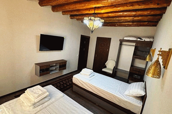 Hotel se nalazi unutar povijesne jezgre grada, što ga čini idealnim polazištem za istraživanje znamenitosti, šarenih tržnica i uskih uličica koje pričaju tisućljetne priče. Al Amin Hotel nudi ugodno uređene, klimatizirane sobe, zajednički salon u kojem se možete opustiti nakon razgledavanja, prostranu terasu s pogledom na gradsku panoramu te bar s lokalnim pićima koji pruža dodatni ugođaj. Svako jutro poslužuje se bogat švedski stol za doručak, savršen za dobar početak dana. Gostima je na raspolaganju besplatno privatno parkiralište, a za one koji putuju zrakoplovom dostupna je i usluga prijevoza iz ili do zračne luke uz nadoplatu. Recepcija je otvorena 24 sata dnevno, a srdačno i profesionalno osoblje govori engleski i ruski jezik, što osigurava ugodnu komunikaciju i bezbrižan boravak.