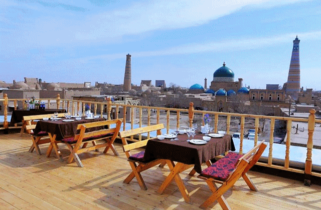 Doručak. Odjava iz hotela te polazak prema Khivi. Danas nas čeka duža vožnja, a naš put nas vodi preko Crvene pustinje, preko rijeke Amu Darya do zelene oaze usred koje se smjestila Khiva, očaravajući gradić, opkoljen očuvanim zidinama, čija je kompletna jezgra je pod zaštitom UNESCO-a. Dolazak u Khivu u kasnim popodnevnim satima. Smještaj u hotel. Kraća orijentacijska šetnja te slobodno vrijeme za večeru. Ljubitelji fotografije neće propustiti osjetiti romantiku noćne Khive. Noćenje.
